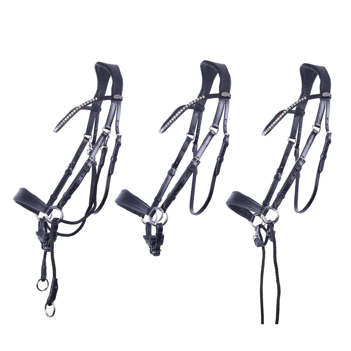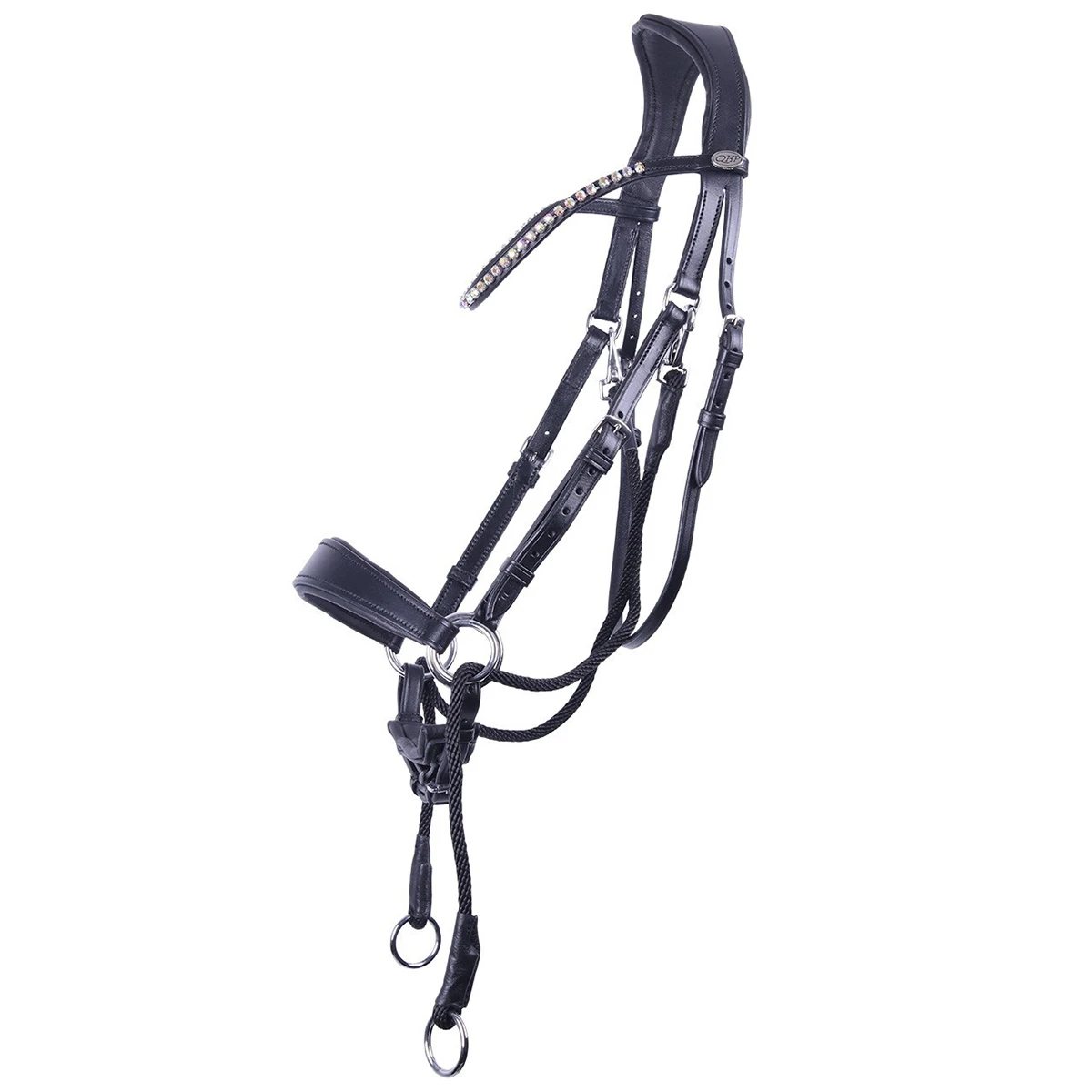- kan gebruikt worden als sidepull, kaakgekruist en kingekruist hoofdstel