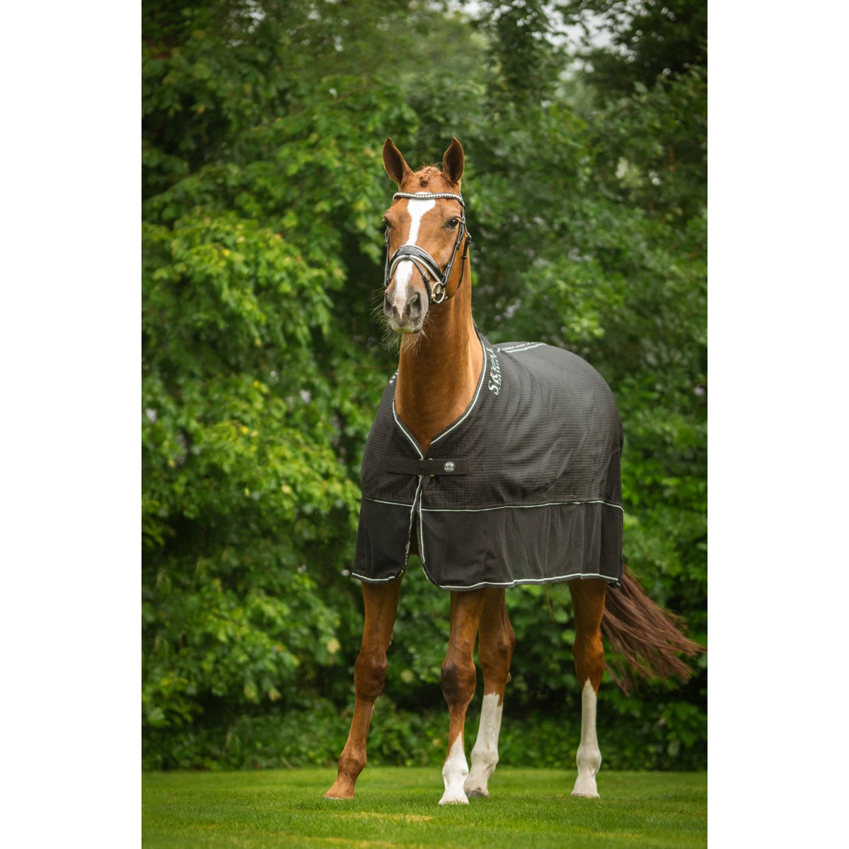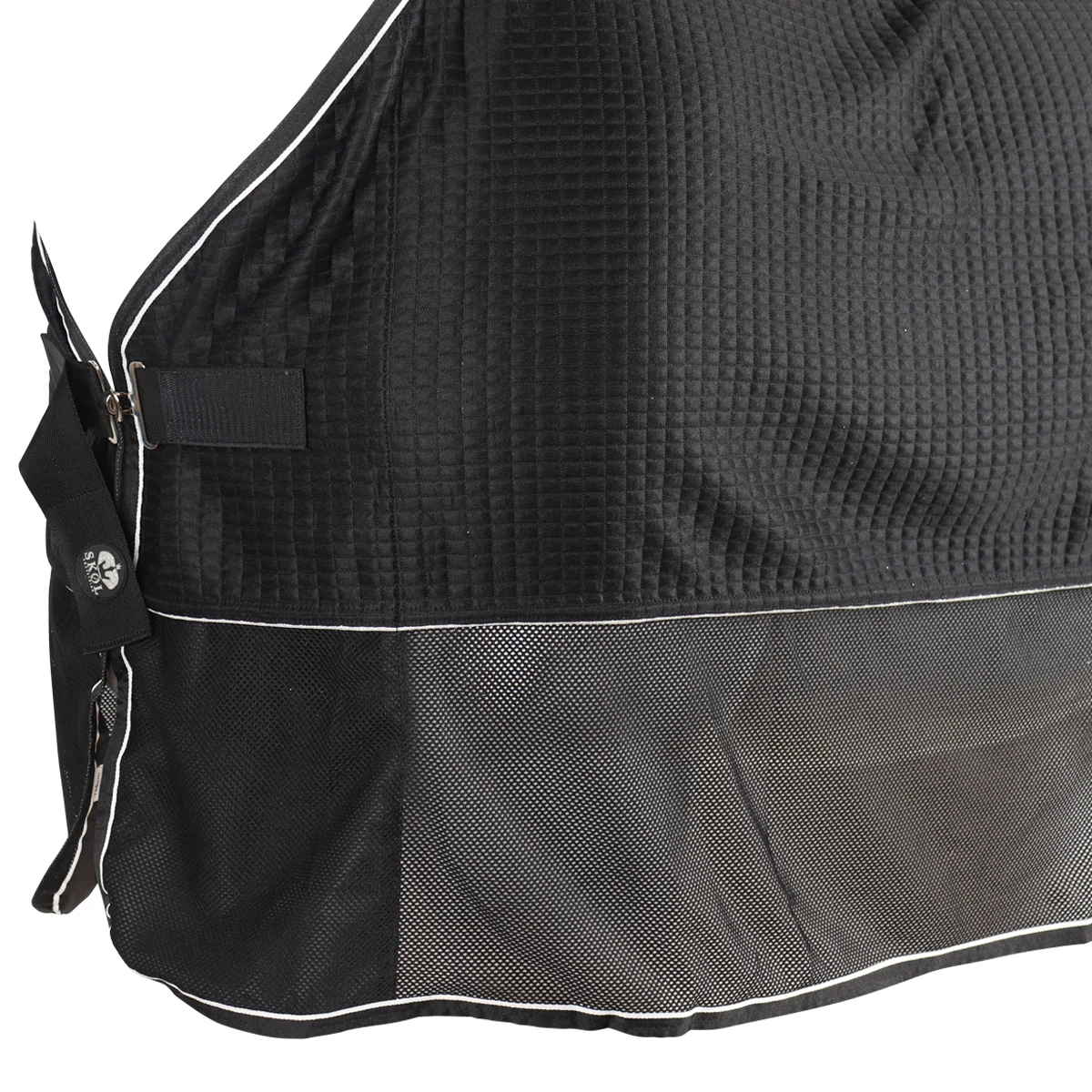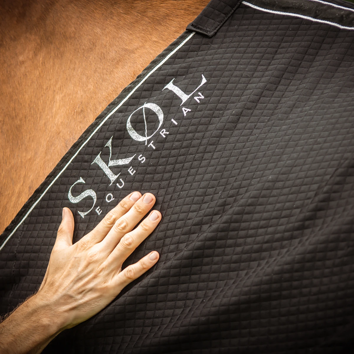 - het zachte en comfortabele materiaal van de bovenzijde neemt vocht op en zorgt dat het paard niet te snel afkoelt