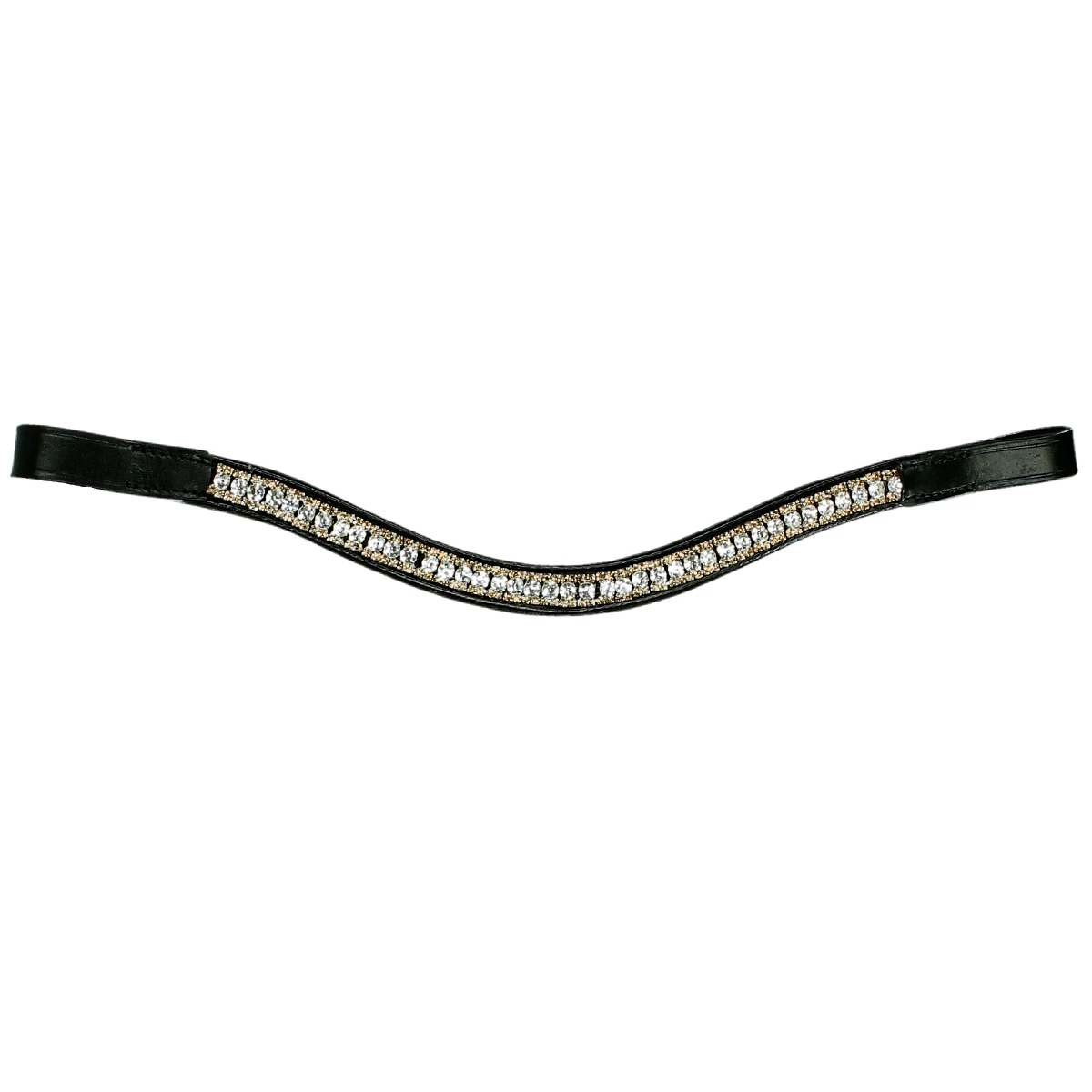 - ingelegd met twee rijen gouden strasssteentjes met daartussen een bredere rij zilveren strasssteentjes