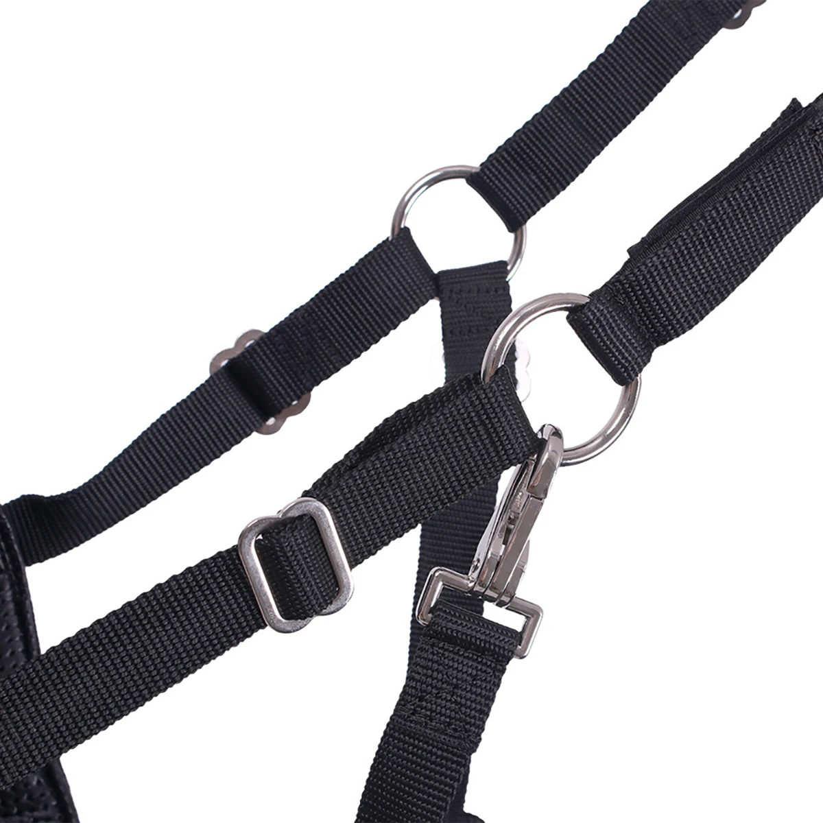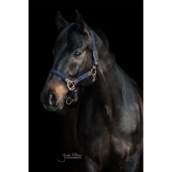 - klittenbandsluiting bij het kopstuk, deze opent bij grote druk, zodat het paard niet vast kan komen te zitten