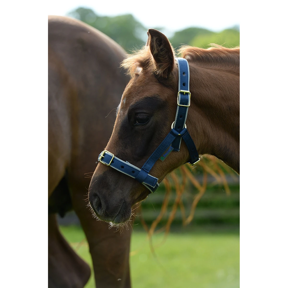 - het halster in maat veulen kan door middel van een gesp versteld worden bij het kopstuk én de neus- en keelriem waardoor dit halster lang met je veulentje mee kan groeien, deze maat heeft geen musketonsluiting bij de keelriem