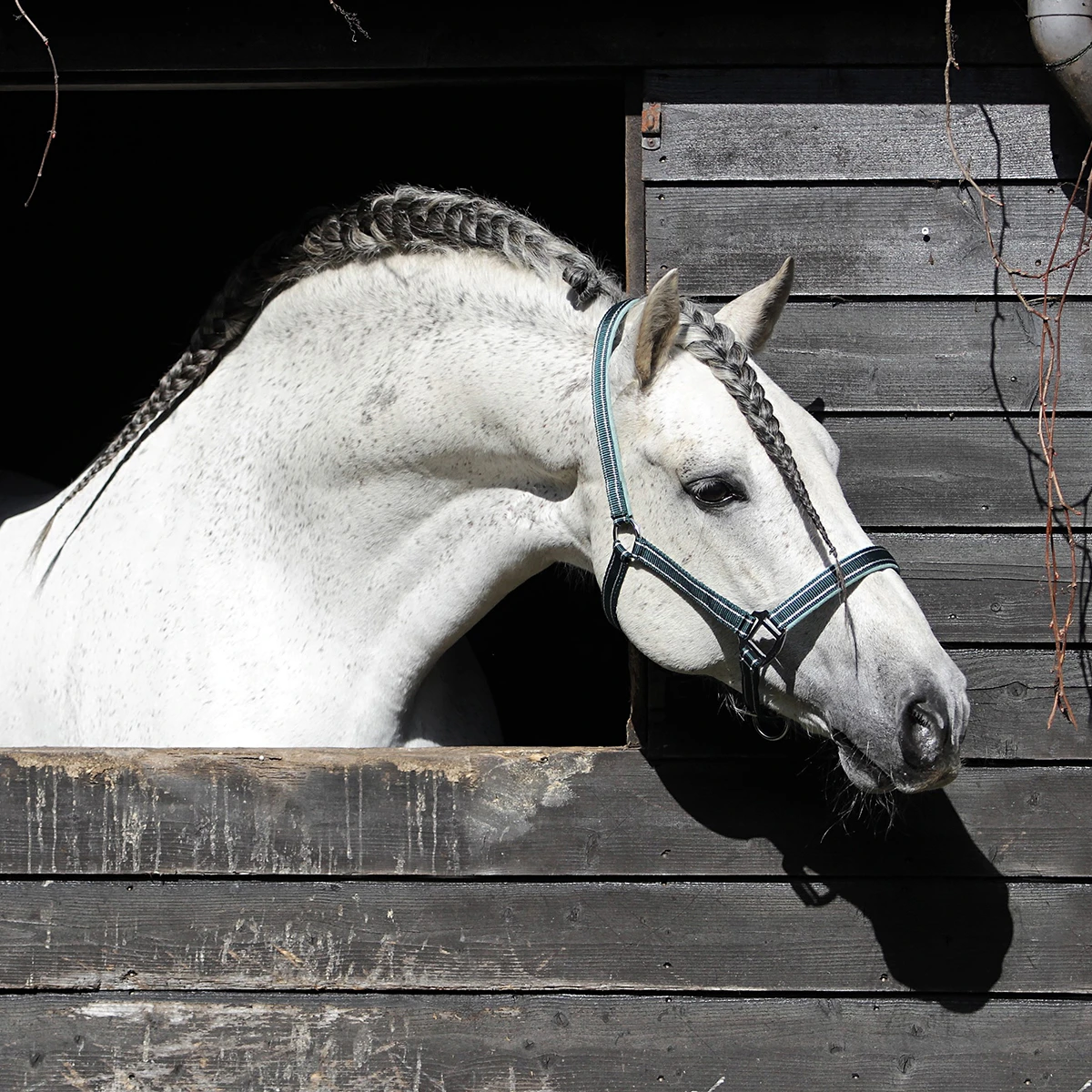 - het halster is ruim verstelbaar bij het kopstuk en de neusriem