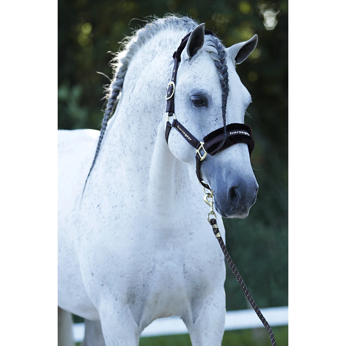 - afgewerkt met glinsterende Horsegear logo’s op de bakstukken en neusriem