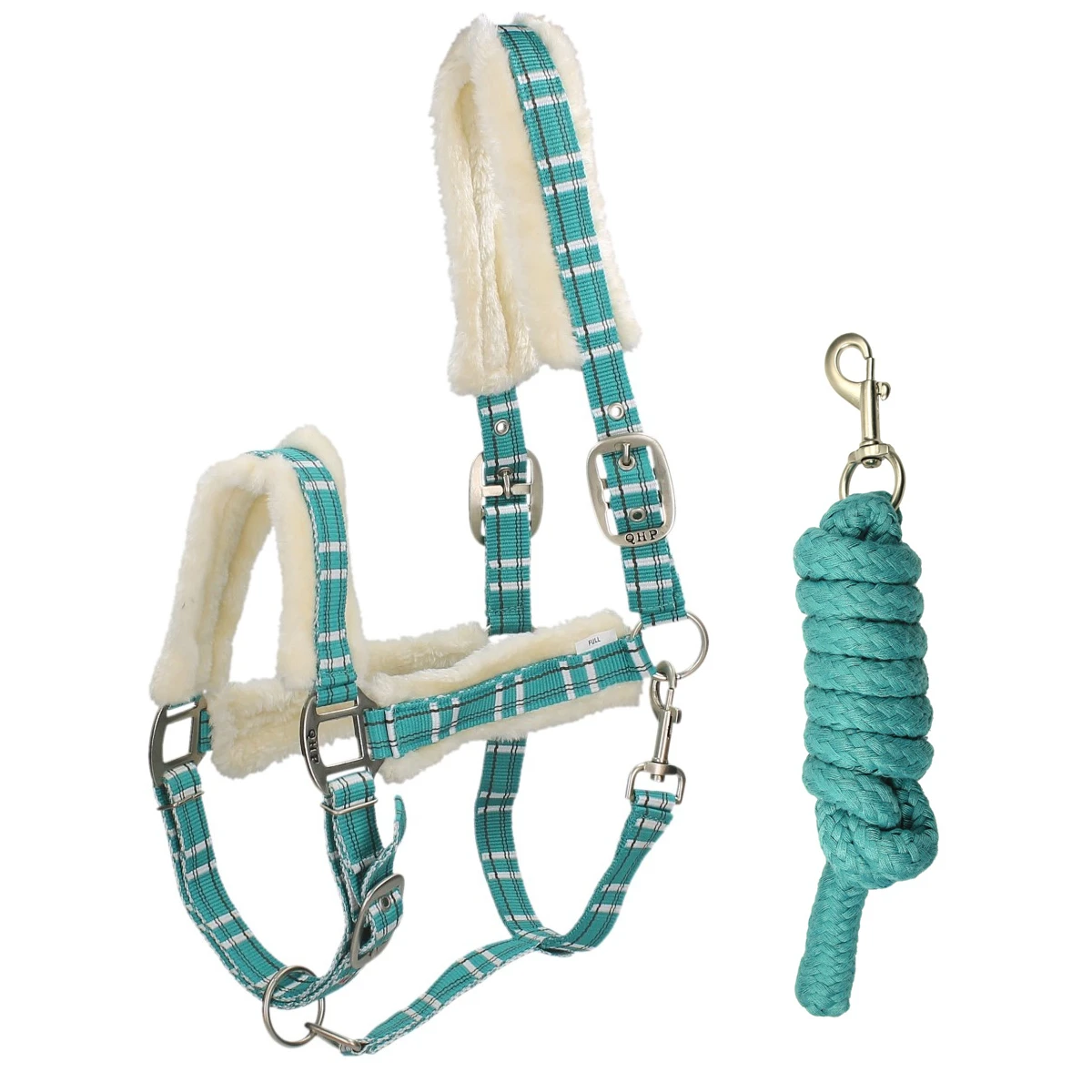 Halsterset Met Bont QHP Check Turquoise