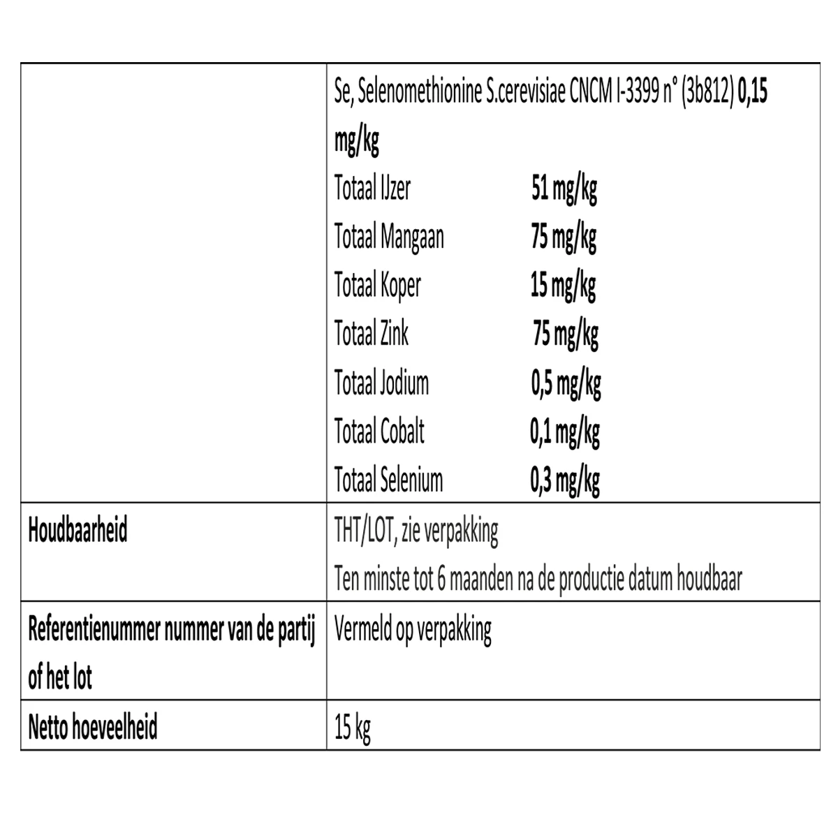 - bevat toegevoegde essentiële vitaminen, mineralen, organisch gebonden sporenelementen, vitamine K en vitamine C