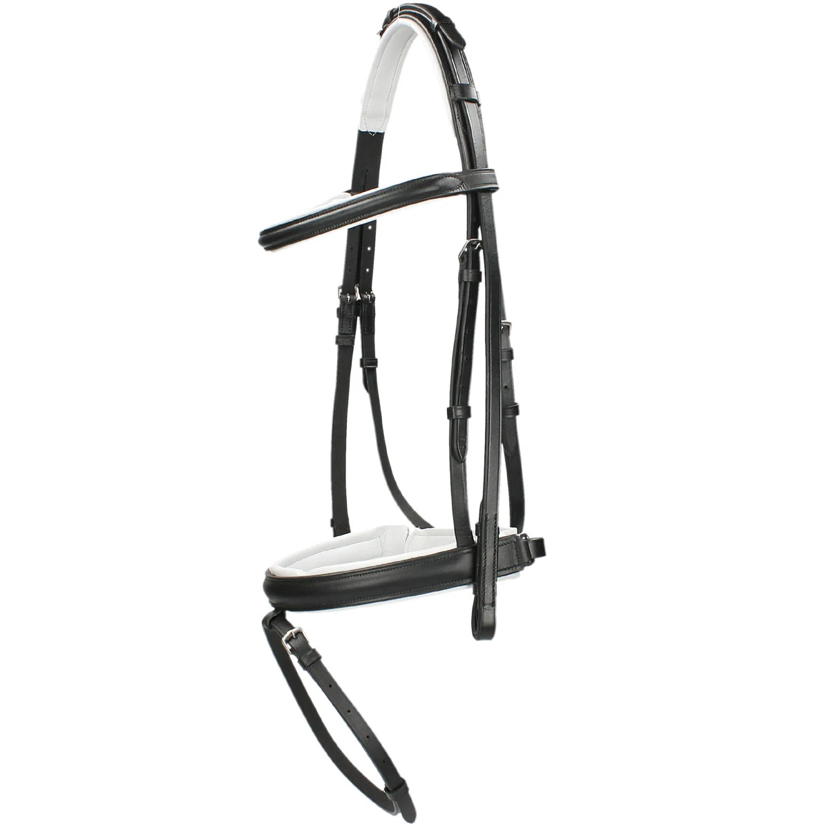 - de neusriem zit vastgestikt in het kopstuk en is aan beide kanten verstelbaar, voorkomt schuiven