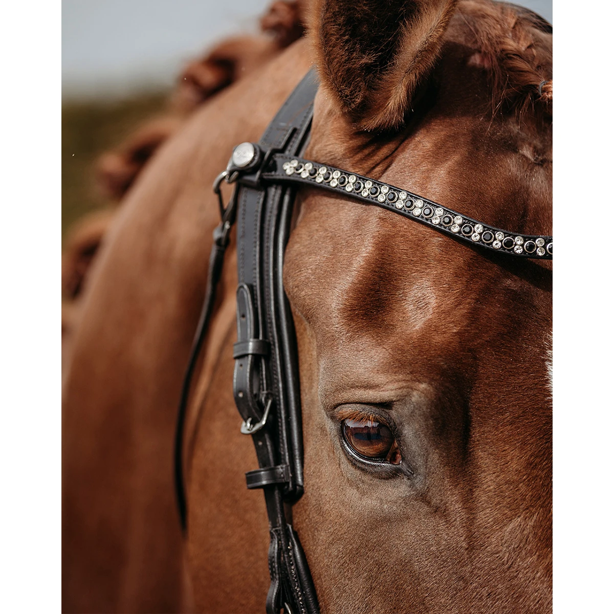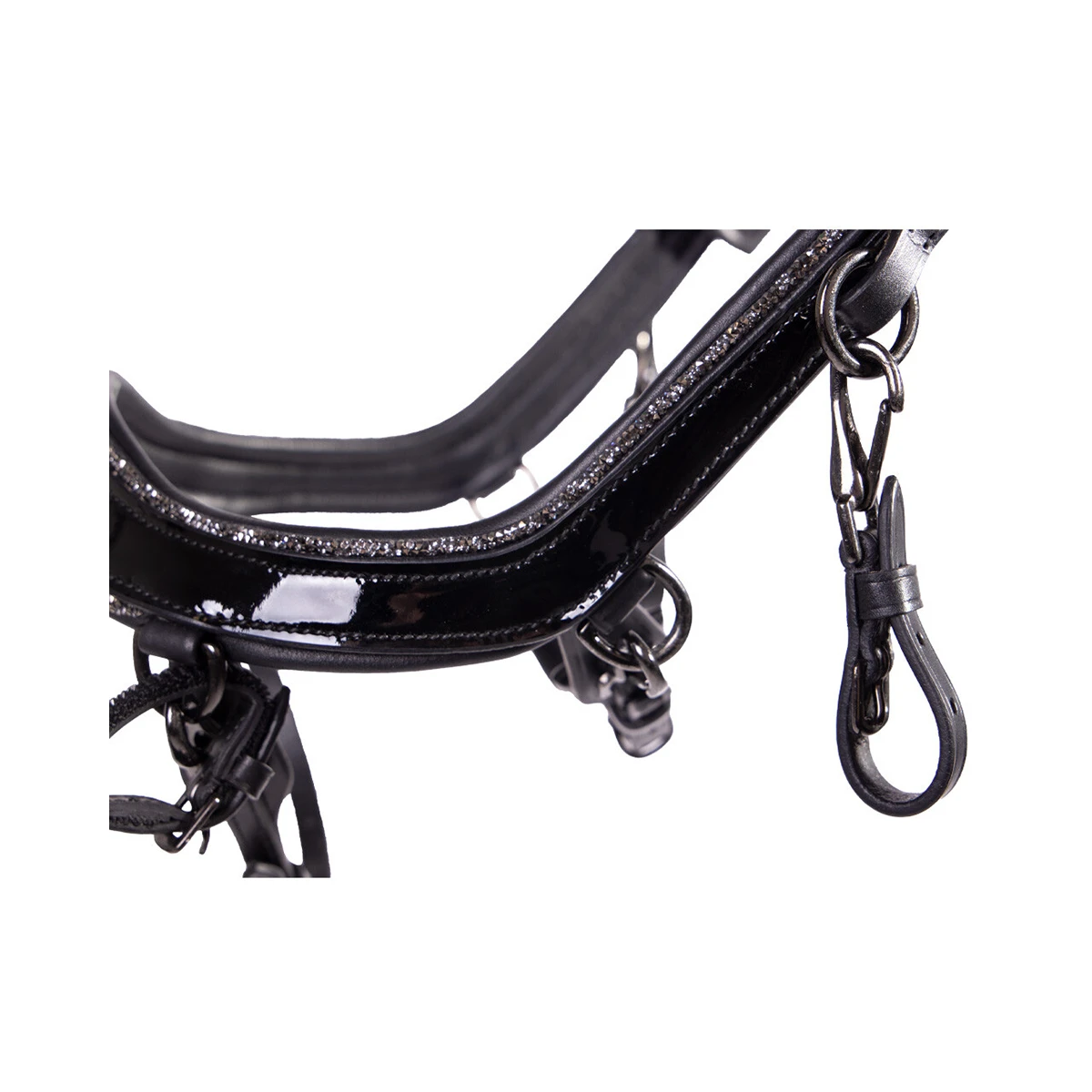- het hoofdstel PresTeq FaySport in een nieuw jasje met prachtige lakleren neusriem met glitterrand en frontriem met strass steentjes
