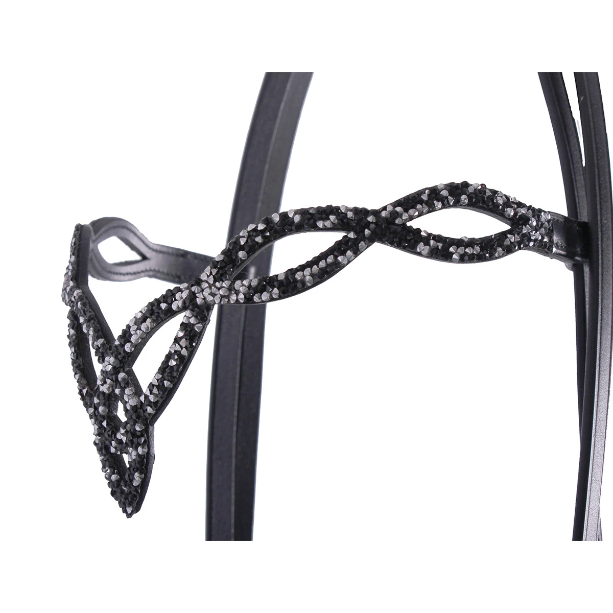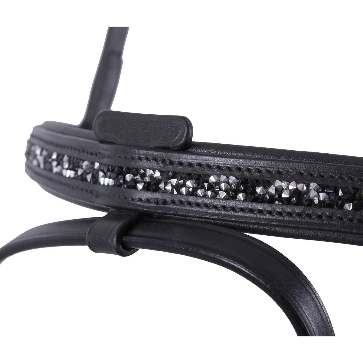 - afgewerkt met zilveren en zwarte strass steentjes op de frontriem en de neusriem