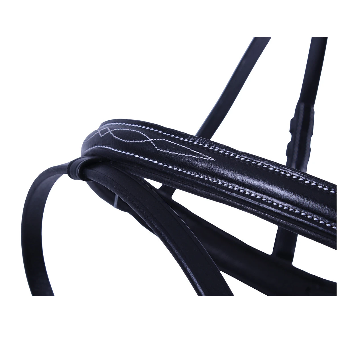 - de frontriem en neusriem zijn gedecoreerd met contrasterende witte stiksels voor een chique look