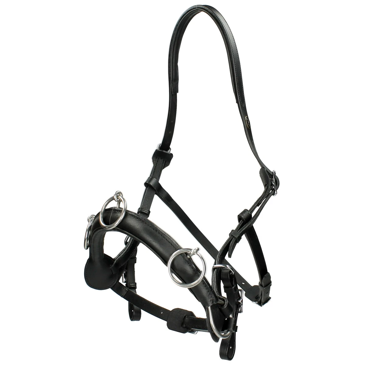 - voorzien van ringen op de neusriem waar de longeerlijn en eventueel de teugels of lange lijnen aan vastgemaakt kunnen worden