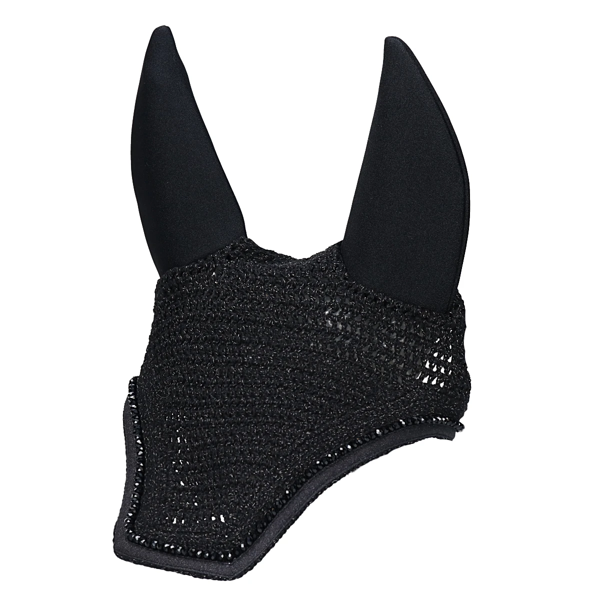 - beschermt de oren van het paard tegen vliegen tijdens het rijden