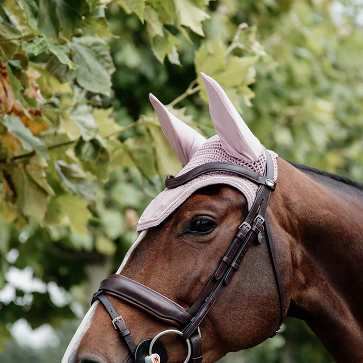 - beschermt de oren van het paard tegen vliegen tijdens het rijden