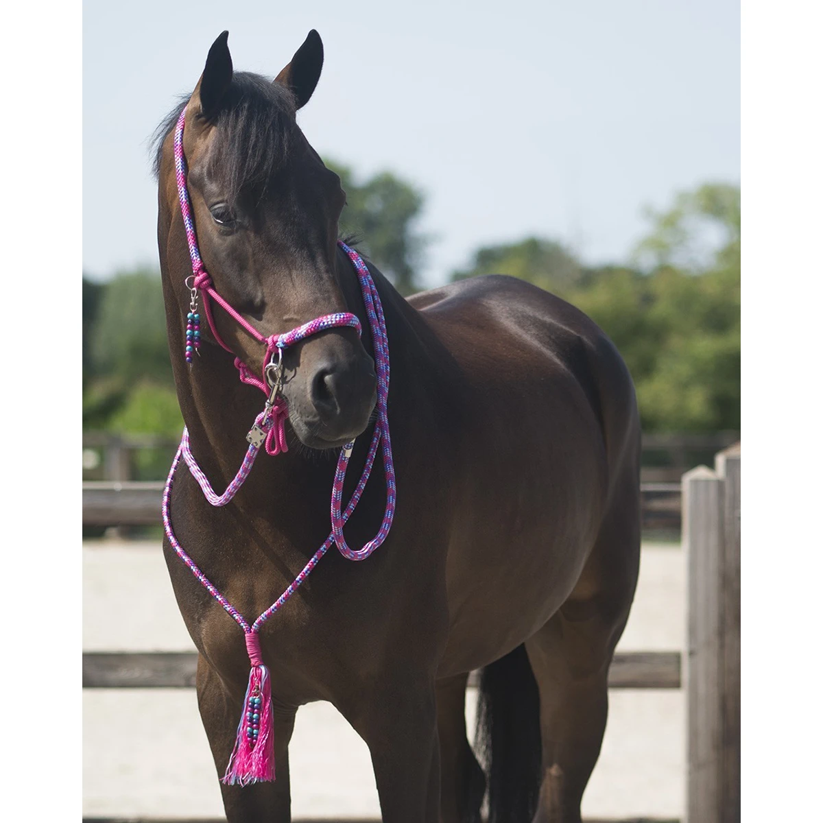 - het halster en het halstertouw zijn voorzien van afneembare bedels