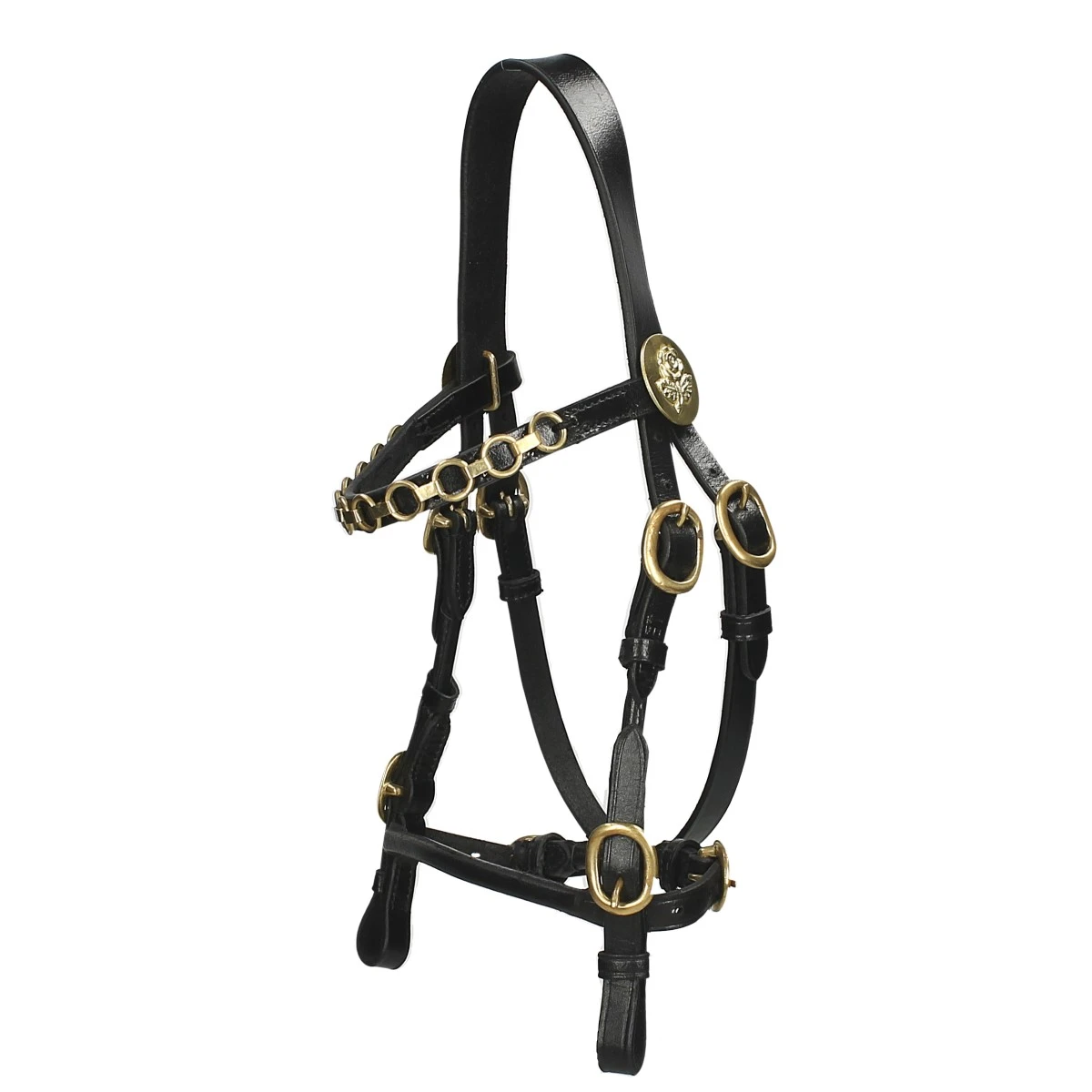- aan de zijkanten van de frontriem voorzien van een gouden rozet met bloemapplicatie
